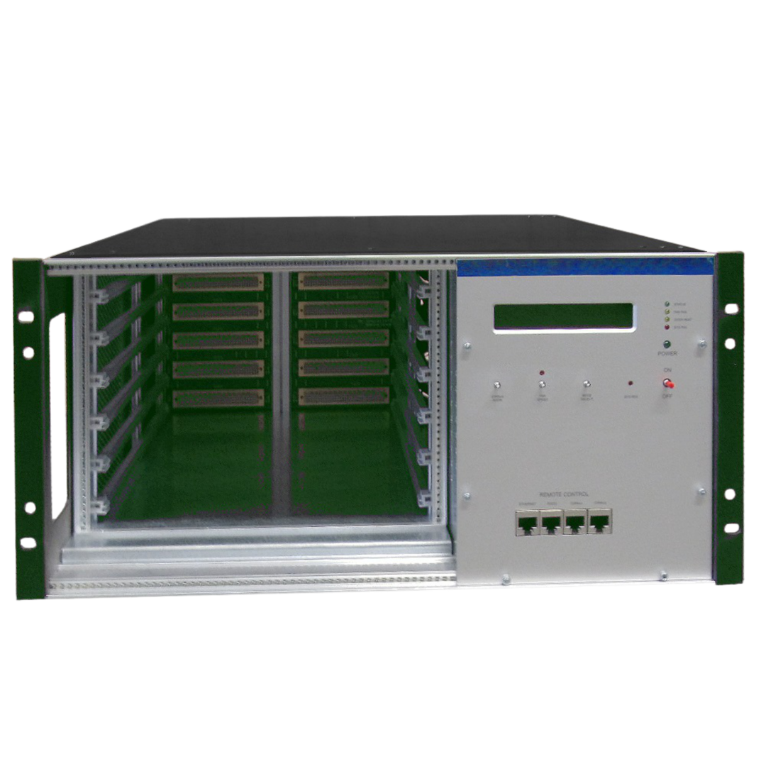 An adjustable DC blower ensures reliable cooling, while multiple thermal sensors with programmable over-temperature protection provide safe and stable operation. The integrated low-noise VHF switching power supply delivers clean outputs with typical ripple below 10 mVpp, and the universal 94–265 V AC input with Power Factor Correction makes the crate suitable for worldwide use.