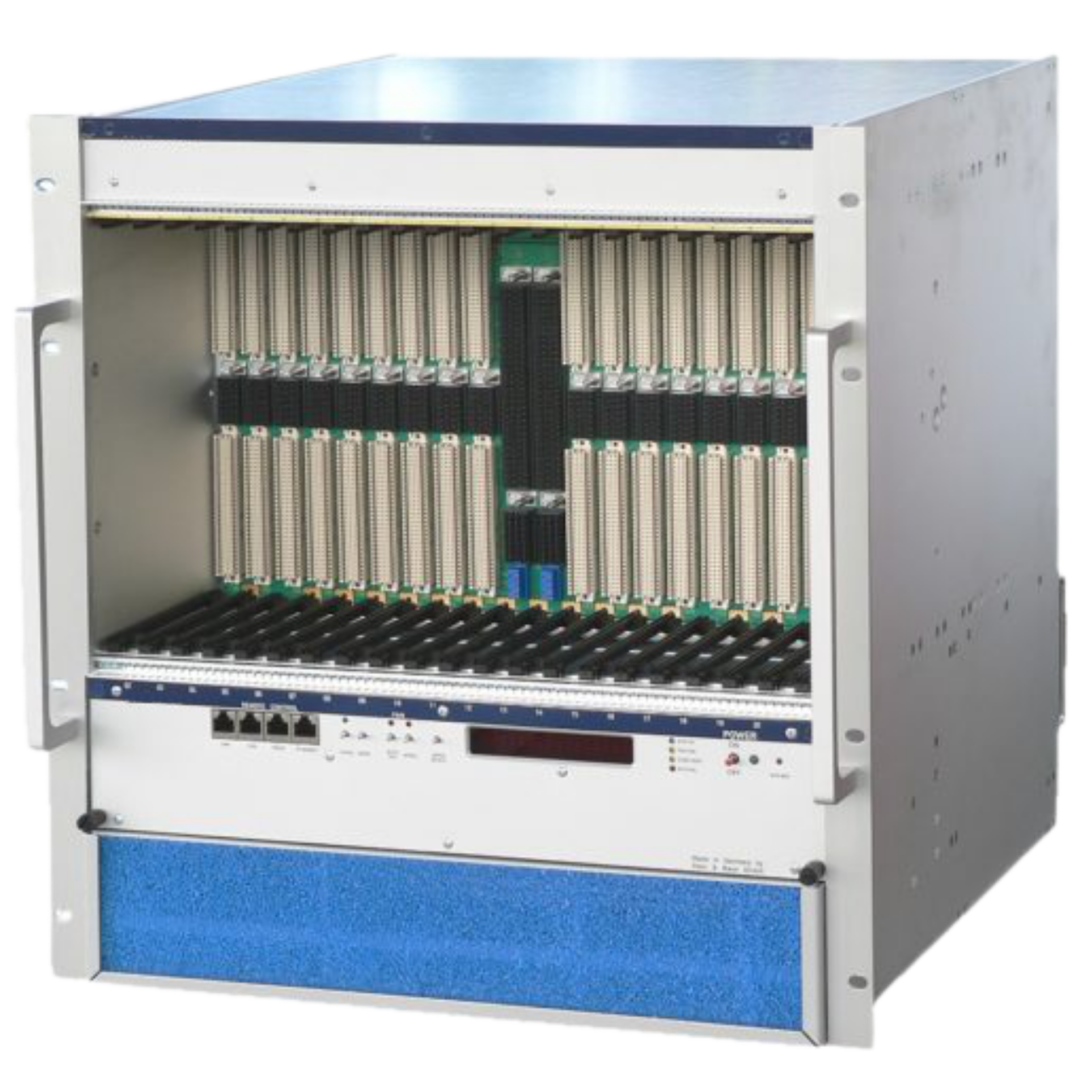 The 6U VXS 6023‑JL Full‑Size Chassis is designed for high-speed data acquisition, aerospace, and defense applications that demand both switched-fabric performance and legacy VME64x compatibility. Its modular architecture comprises a rugged UEV 6023S bin with a dedicated air compression chamber, a UEL 6020 EX microprocessor-controlled fan tray with real-time diagnostics, and a low-noise UEP 6021 power supply delivering up to 3 kW of DC power. The front-blower tray and rear PSU placement ensure unobstructed access to the VXS backplane, while its 21-slot dual-star topology enables multi-GB/s data throughput. Remote monitoring via Ethernet, RS232, and CAN-bus, along with comprehensive EMC/ESD shielding and IEEE 1101.10 compliance, make this chassis both high-performance and easy to maintain—a robust solution for critical measurement and instrumentation systems.